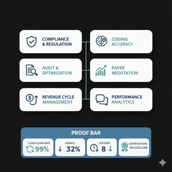 At Blue Water Medical Billing, We transform complexity into consistent cash flow, so you can focus 100% on patient care. With over 17 years of proven expertise, we’re not just a medical billing service; we’re your trusted partner in navigating the complex world of healthcare reimbursement. Our promise? Transparent pricing, HIPAA-compliant security, and a personalized approach tailored to your practice's growth. We blend years of experience with innovative tools to ensure your practice thrives in an ever-evolving industry. Clients trust us to streamline their revenue cycle because we don’t just process medical claims—we unlock your potential. Ready to reclaim your peace of mind and maximize your revenue? Let’s make it happen—together.